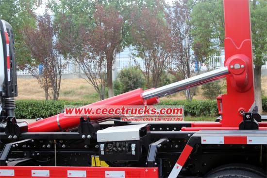 液压油泵及操作阀、平衡阀、液压锁、钩臂主操作油缸、套臂滑动油缸、液压油管、液压油箱、液压加强后支腿。 操作方式:手动、无线遥控操作。 一个翻斗箱, |