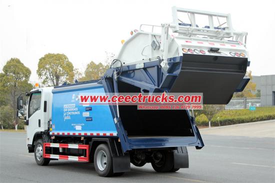 10cbm garbage bin,with 4 operation methods五十铃10立方米垃圾压缩车是一款专为城市垃圾管理而设计的高效设备。它采用先进的压缩技术,显著减少垃圾体积,从而提高运输效率,减少运输次数,降低运营成本。该车基于五十铃NPR底盘,配备190马力4HK1发动机和六速变速箱,动力强劲,行驶平稳。紧凑的设计,便捷的操作, 五十铃10CBM液压垃圾压缩机 适用于城镇等各种环境的垃圾收集、运输。