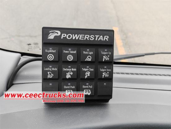 操作控制:该车配备四种操作控制方式,分别为驾驶室内部电控箱、驾驶员侧手动液压操作杆、尾门左侧电控箱、尾门右侧手动操作杆。这四种操作控制方式的设计充分考虑了驾驶员的操作习惯和不同作业环境的需求,从而提高了工作效率。