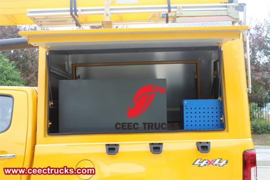 作为一款移动服务车辆,五十铃4x4皮卡工具车配备了工具箱、急救包等大量救援工具,成为名副其实的“移动工作站”。无论是电力抢修、道路救援、野外勘探还是紧急医疗服务,它都能快速响应,提供及时有效的现场支援。