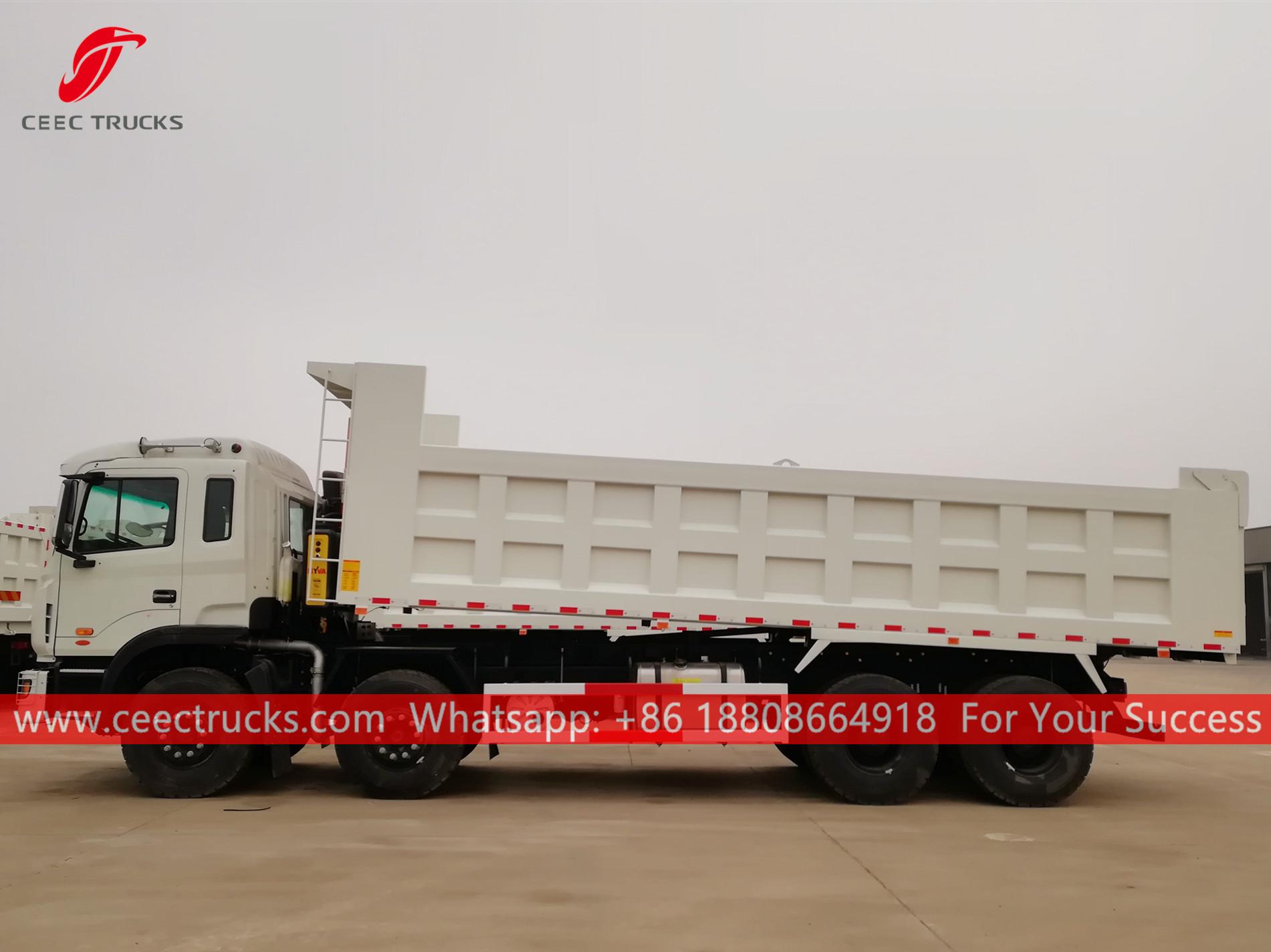 江淮8x4自卸卡车,江淮8x4左舵底盘,法士特10档手动变速箱,中国知名品牌玉柴290马力柴油发动机,高强度钢制自卸车身,可选配海沃或国产液压升降装置。所有喷漆和标识均根据客户需求定制。