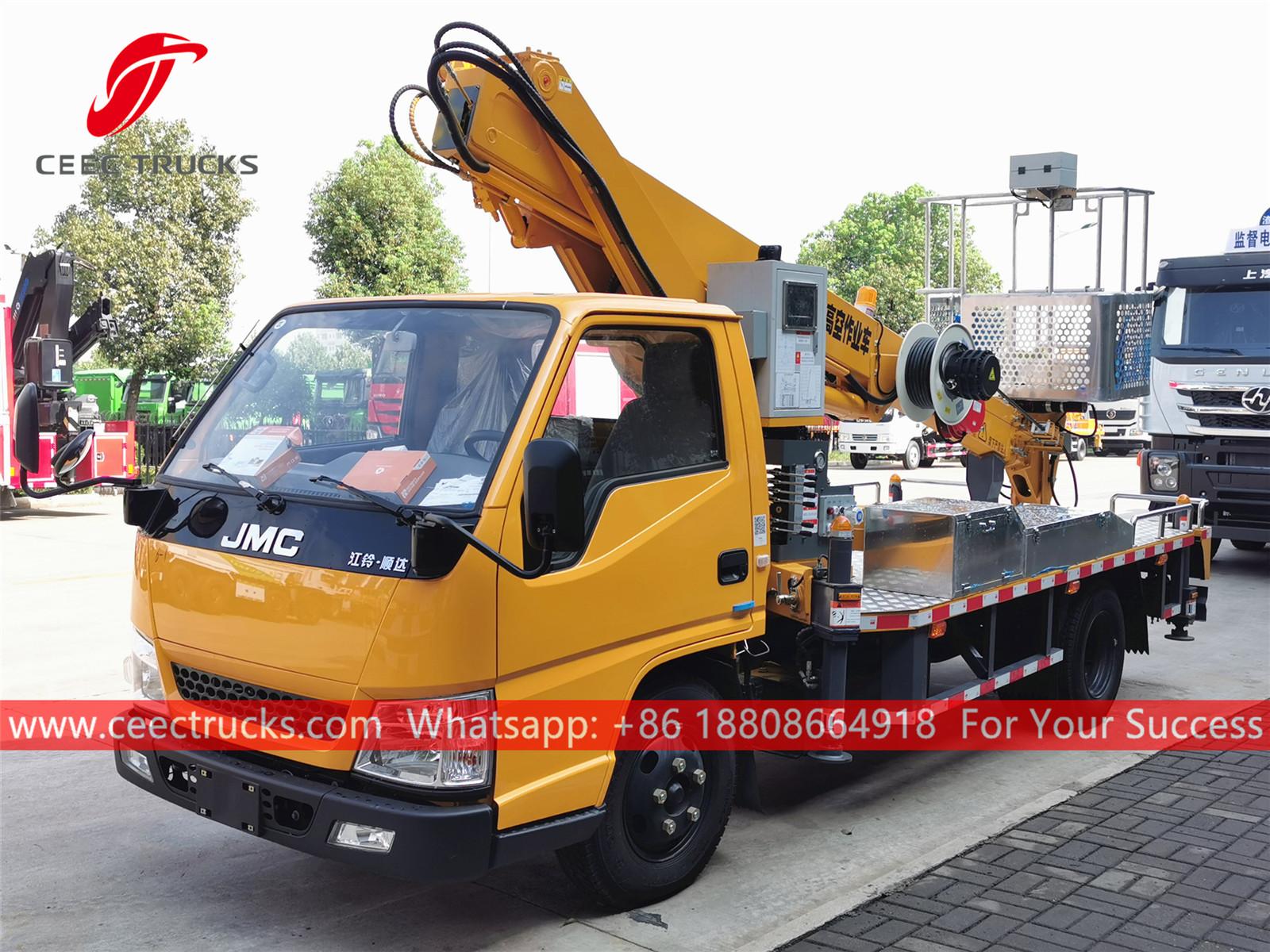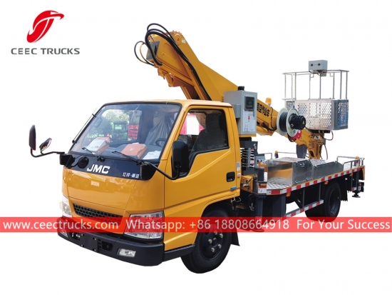 江铃16米伸缩臂 (还称为 高空作业平台车,江铃卡车式动臂升降车,低价载人升降车,高平台作业车,4x2高空作业车,臂式升降铲斗车)非常适合维护交通信号灯、路灯、园林树木、清洁/设置招牌和其他高空作业。