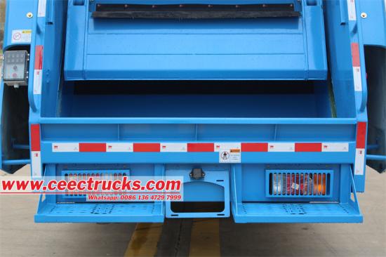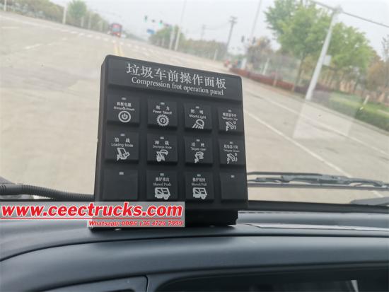 这辆卡车先进的控制系统操作简便、高效。该车采用台湾永宏 PLC(可编程逻辑控制器)电气控制系统,可实现垃圾压缩过程的精确可靠自动化。为方便操作员,叉车设有两组电气控制按钮:一组位于驾驶室内部,另一组位于后挡板左侧。此外,该叉车还配备了位于驾驶室后部的液压手动操作装置,在电气系统发生故障或需要手动操作时,可通过另一种方式控制垃圾压缩功能。这种双控制系统确保叉车操作平稳高效,满足废物管理作业的多样化需求。