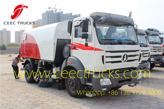完整的清洁工作设备——我们的北奔公路卡车配有扫地板2台、副发动机、优质电机、控制开关、电磁控制阀、免维护自分离离合器、免维护风扇、不锈钢水箱、后部箭头LED灯和手动泵应急系统。