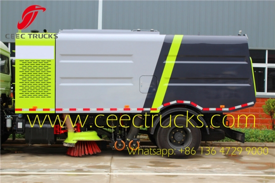 重型道路清扫车,配备 8CBM 集尘箱和 3CBM 清洁水箱,全不锈钢材料,东风 4 * 2 LHD 底盘,康明斯 190HP 发动机,8 档手动变速箱出售