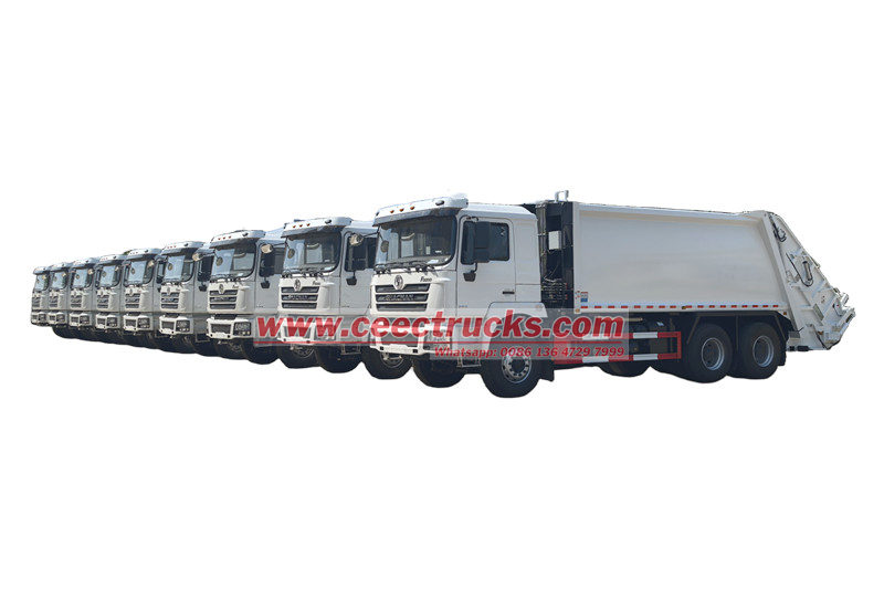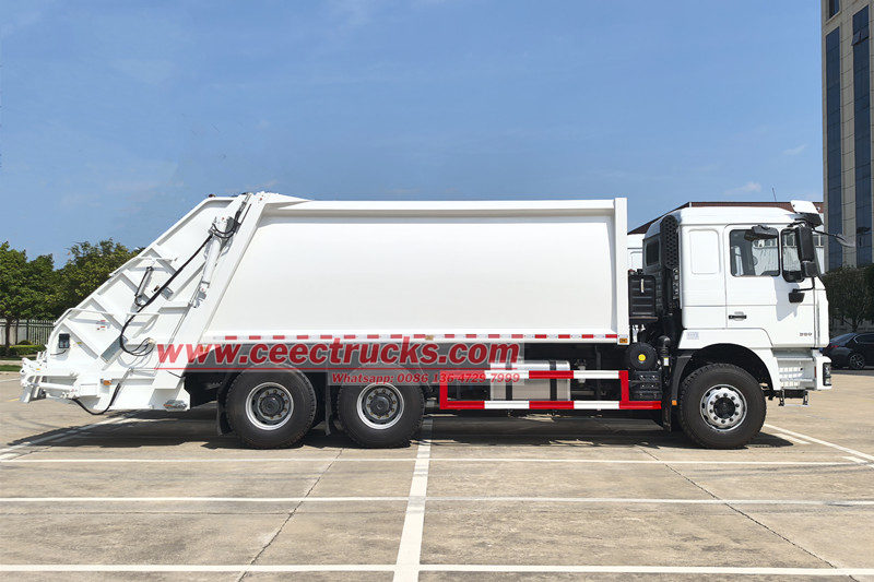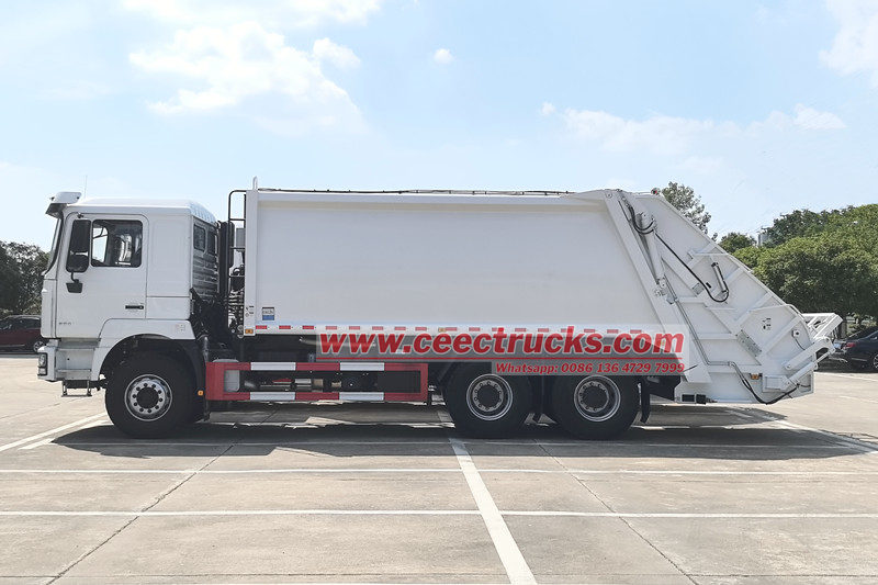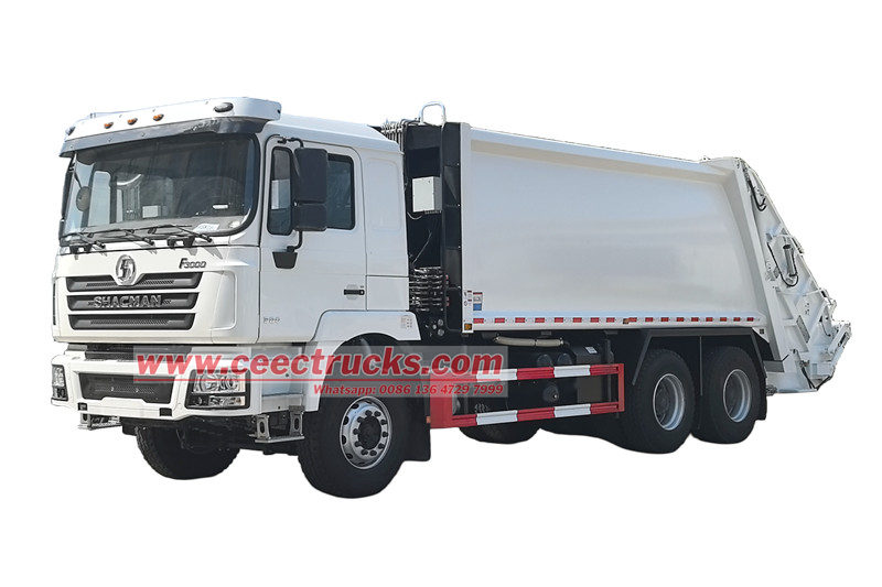 陕汽25立方米后装式垃圾车(又称陕汽6x4垃圾压缩车、陕汽F3000后装式垃圾收集车、陕汽25立方米垃圾压缩车、陕汽分体式后装式垃圾车、陕汽10轮垃圾压缩车) 是一种新型环卫车辆,专门用于收集、运输和清除垃圾。