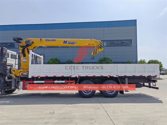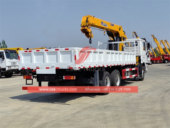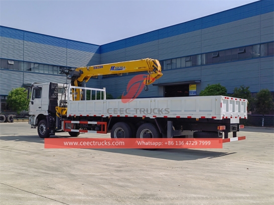 Shacman F3000 起重机卡车,Shacman 6x4 左侧驾驶底盘,FAST 12 档手动变速箱,WEICHAI 375HP 柴油发动机,XCMG 10 吨折臂起重机,货厢尺寸按要求,喷漆和标识取决于要求。