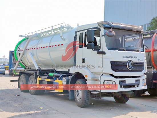 Shacman H3000 6×4真空罐车 (一个又称 Shcaman 340HP 下水道清洁车,沙卡曼重型真空化粪池卡车,沙卡曼化粪池清洁车,沙卡曼高压下水道清洁车,沙卡曼吸污车,沙卡曼真空卡车,沙卡曼真空罐车,沙卡曼吸盘车,下水道吸盘,沙卡曼抽油烟机,沙卡曼下水道真空吸污车) 用于收集、输送和排放污水、污泥、化粪池、原油等液体,以及小石子、砖块等固体物质。适用于下水道、化粪池、化粪池、沟渠等的清理。广泛应用于环境卫生领域。