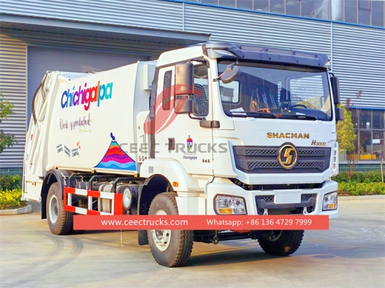 Shacman H3000 20cbm后装垃圾车 (也称为 垃圾压缩机,Shacman 垃圾压缩车,工厂直销垃圾压缩车,后装载机,垃圾压缩车,垃圾压缩机中国制造商) 是 适用于各类城市、大型车站、港口码头、机场等生活区、工矿企业、部队等人口密集地区的日常垃圾运输。