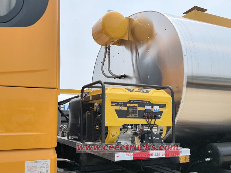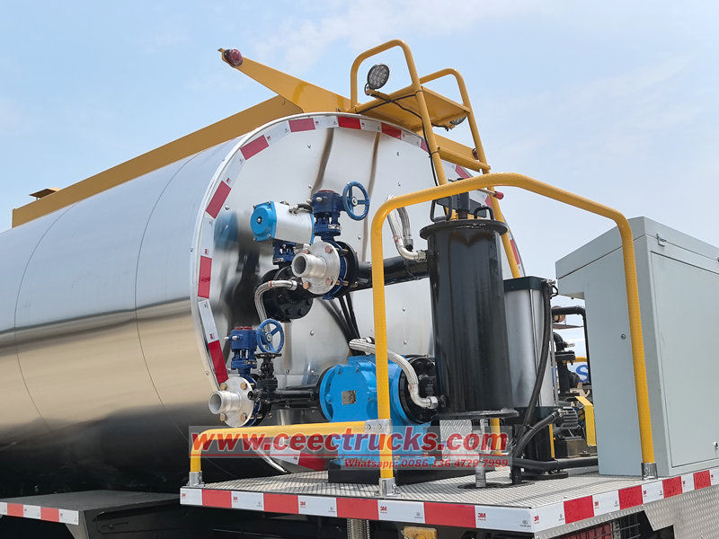 其箱体配备大容量保温罐,采用高效保温材料和智能温控系统,可长时间储存不同等级的热沥青或改性沥青,确保料温稳定、流动性好。