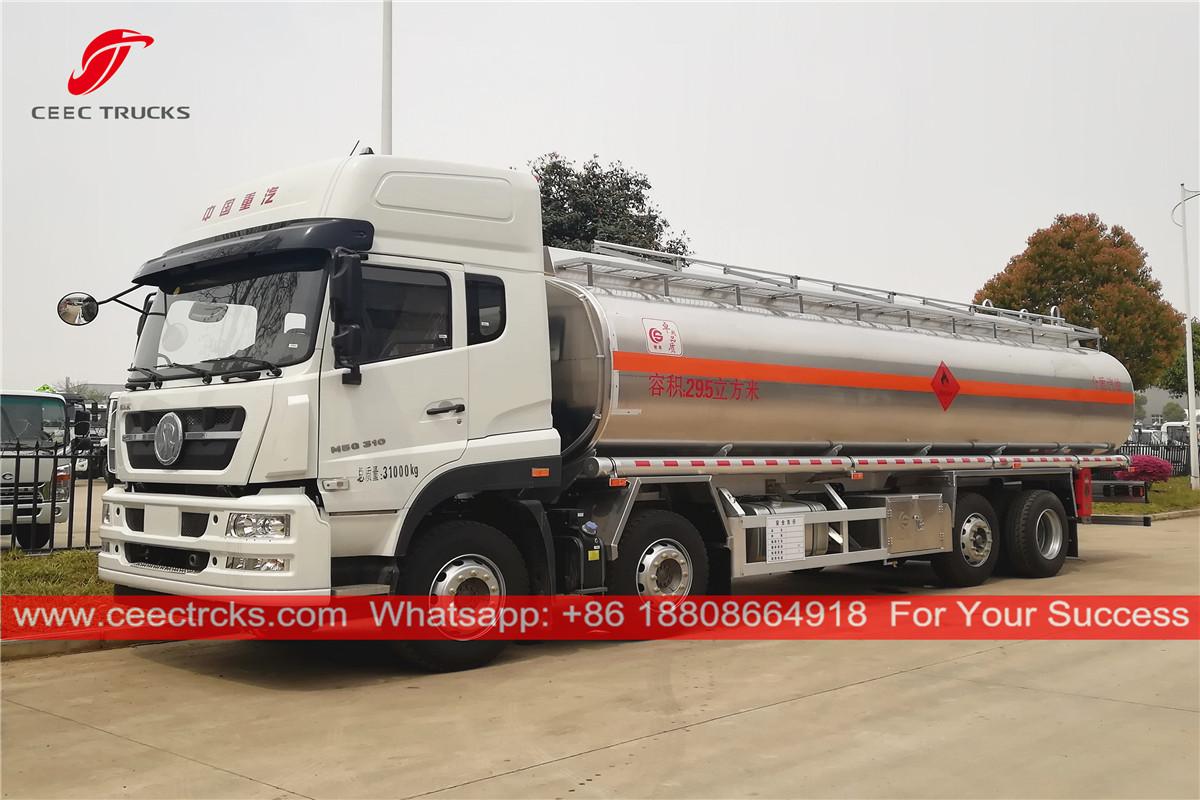 29.5立方米油罐车,中国重汽8x4底盘,10档手动变速箱,中国重汽310马力柴油发动机,标配油罐车,标配知名品牌油泵。所有喷漆和标识均按要求定制。