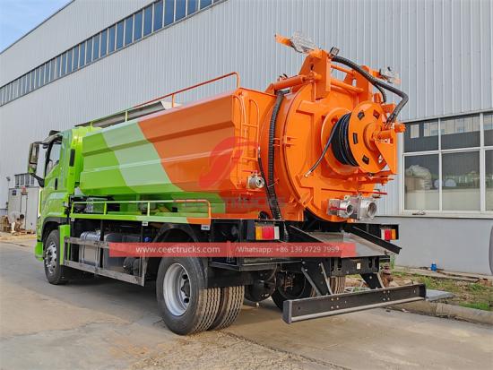 1. 高效的污水处理能力: 组合设计 6 000升污水箱和 4 000升清水箱是五十铃的核心优势 频率电压比 五 真空罐 卡车。在城市污水管理中,经常会出现需要快速处理大量污水的情况,例如暴雨后积水或管道严重堵塞。有了如此大容量的罐体,操作员可以一次调度处理更多污水,大大提高工作效率。同时, 4 000升的清水箱,确保有足够的水进行管道冲洗和清洁作业,无需频繁往返加水。这不仅节省了时间和燃料,还减少了车辆在道路上的往返次数,间接减少了交通压力和碳排放。