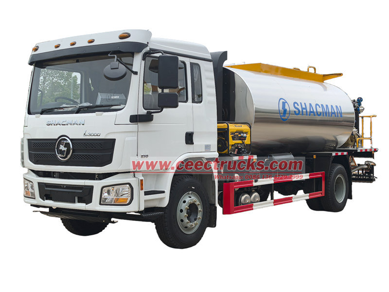 4x4 drive avaiable陕汽道路沥青洒布车是用于公路和城市道路施工的专用机械。该车配备保温箱、沥青泵、加热器和喷洒系统。可喷洒热沥青、乳化沥青、渣油和其他液体材料。