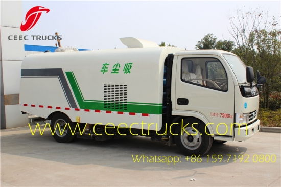 东风5立方真空吸路清扫车,采用95马力发动机,非洲国家欧3排放,5档手动变速箱,5立方不锈钢材料罐,无刷装置