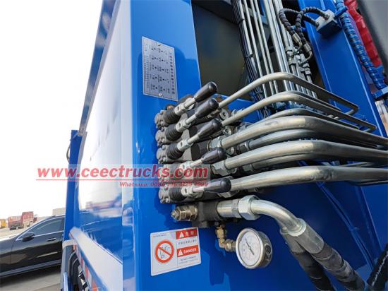 Hang bucket type flip mechanism赞比亚一汽8方后装垃圾车是基于一汽解放虎VH单排驾驶室平台改装的一款专用作业车,专为城市环卫、社区垃圾收集等场景打造。一汽4x4全驱右驾压缩式垃圾车堪称赞比亚环卫的“适应性利器”。赞比亚基础设施建设活跃,路况复杂且靠左行驶,这款车的优势得以充分展现。它基于成熟平台改装,右驾设计完美适应当地交通规则,确保行驶安全。轴距合理的全驱底盘,使车辆在崎岖泥泞的路面上也能畅行无阻。180马力大柴发动机动力强劲,满足欧六排放标准,兼顾高效运行与环保要求。8方圆弧形碳钢垃圾箱体经防腐处理,坚固耐用,装载量大。挂桶翻转机构,适配多种类型垃圾箱,高效收集。 200L污水箱防泄漏,多模式控制系统可让驾驶室、车侧、车尾灵活控制垃圾装卸,大大提高了作业效率,有效促进了当地环卫水平的升级。